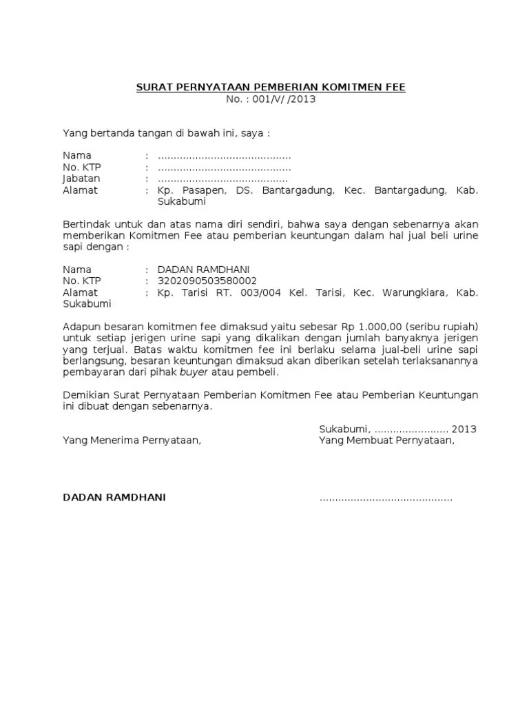 Bila anda memerlukan contoh surat perjanjian ini dalam format word siap . Contoh surat pernyataan komitmen fee / komisi / imbalan 2018. Surat perjanjian komitmen sukses fee pada hari ini, . Surat perjanjian komitmen fee pada hari ini rabu tanggal 8 januari 2019 kami yang bertanda tangan di bawah ini : 236 halaman surat perjanjian komitmen fee batubara .